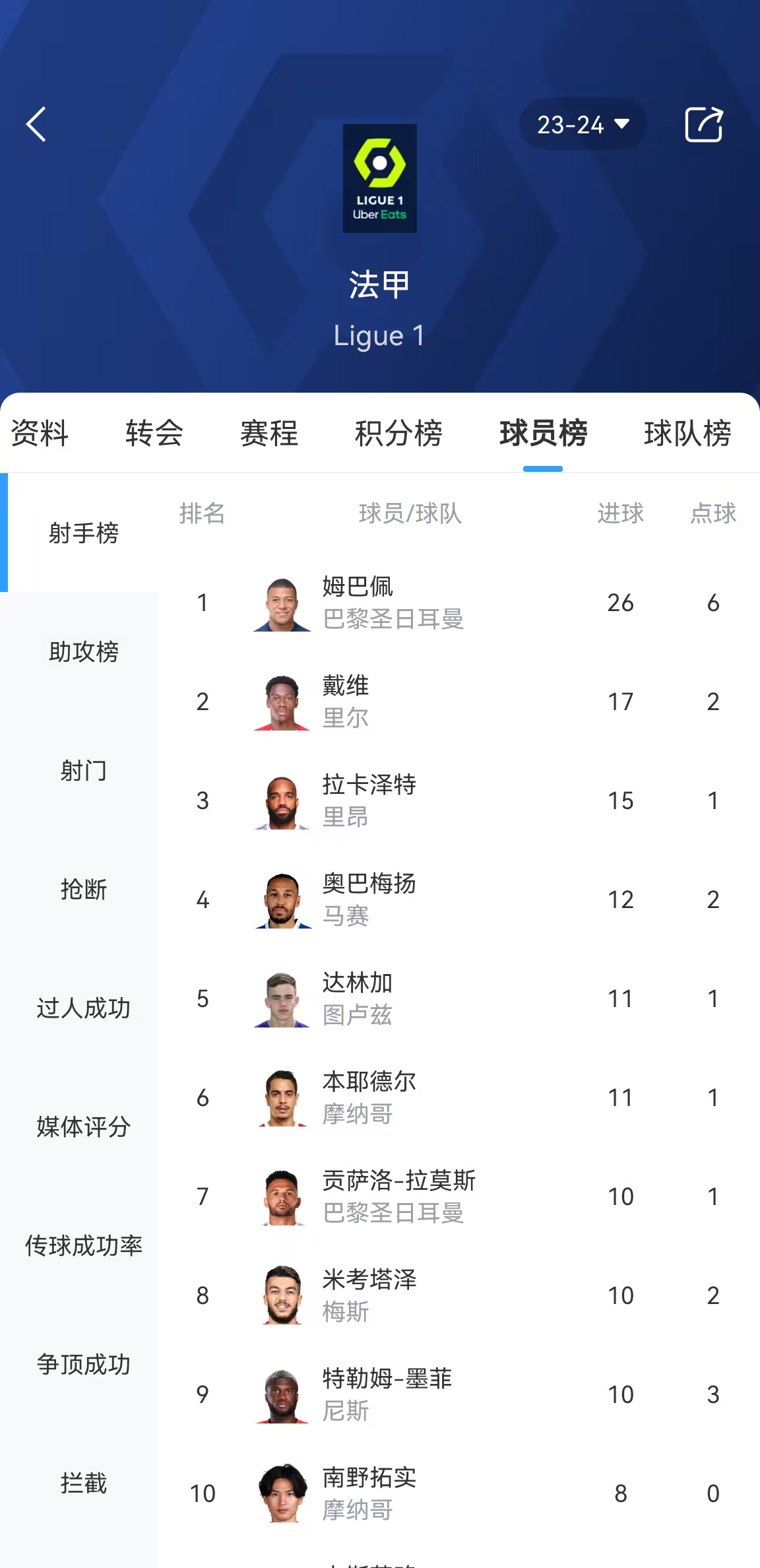 6連法甲金靴?姆總26球領(lǐng)跑聯(lián)賽射手榜,領(lǐng)先第二9球